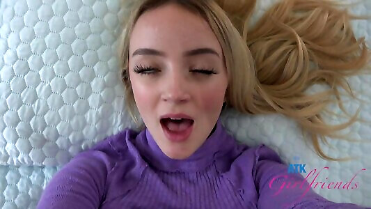 Petite blonde with sexy legs tries footjob first time before anal fucking