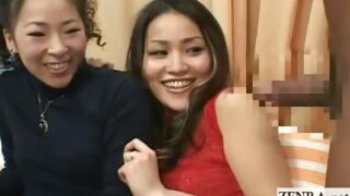 Subtitled CFNM Japanese sauna lady duo penis cleaning