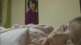 Asian stepmother screws her stepson right next to her resting hubby