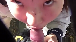 Japanese schoolgirl, Mikoto Mochida is sucking a stranger's