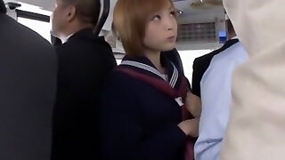 Sexy Japanese girl with an awesome body getting her cooch fingered on a bus