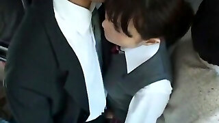 Slutty Japanese Babes Sucking Jizz-shotguns In The Public Bus