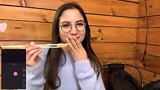 Smoking Brunette Asian Girlfriend Surprises Boyfirend After Work with a Bowjob Her Breasts