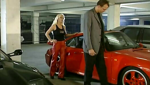 A hot blonde German babe gets fucked by three loaded and hard cokcs
