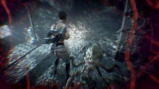 jill valentine atada con cinta y bondage de cuero-escaparate modelo re3